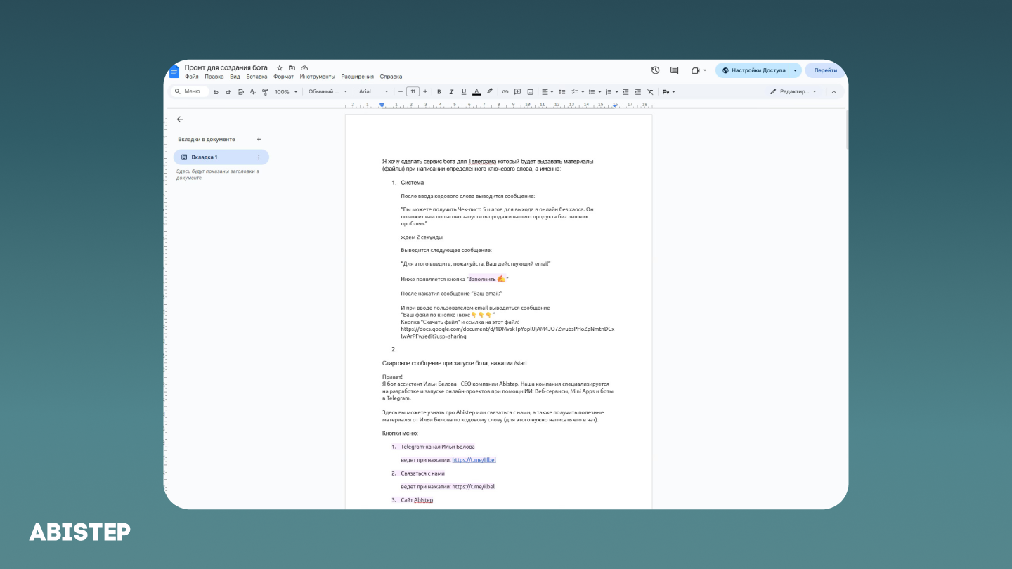 Я — основатель и руководитель компании Abistep, где мы создаём онлайн-продукты: сайты, Telegram-ботов и мини-приложения. В последнее время мы активно используем гибридный формат разработки (ИИ + кастом). ИИ уже заменил нам дизайнеров, UX-специалистов и всё чаще берёт на себя написание кода. Разработчики в этом процессе подключаются на следующем этапе: берут код, сгенерированный нейросетями, проверяют его, дорабатывают, правят и расширяют.