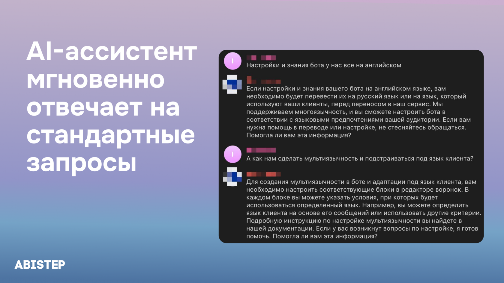 ИИ-ассистент внутри бота не «допрашивает», а мягко вовлекает, при этом анализируя контекст: