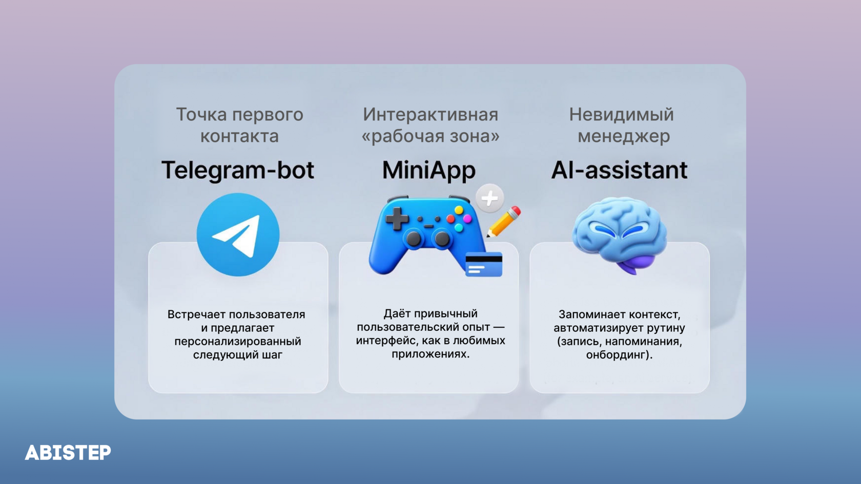 Но настоящая сила Telegram раскрывается только когда эти три компонента — Telegram-бот, Mini App и ИИ-ассистент — работают как единый организм.