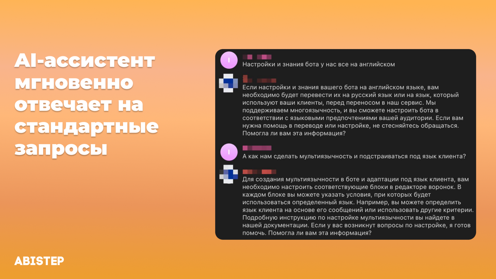 ИИ-ассистент понимает контекст, учится на диалогах, адаптируется под стиль общения и может обрабатывать нетиповые запросы. Он не просто отвечает — он решает задачу.