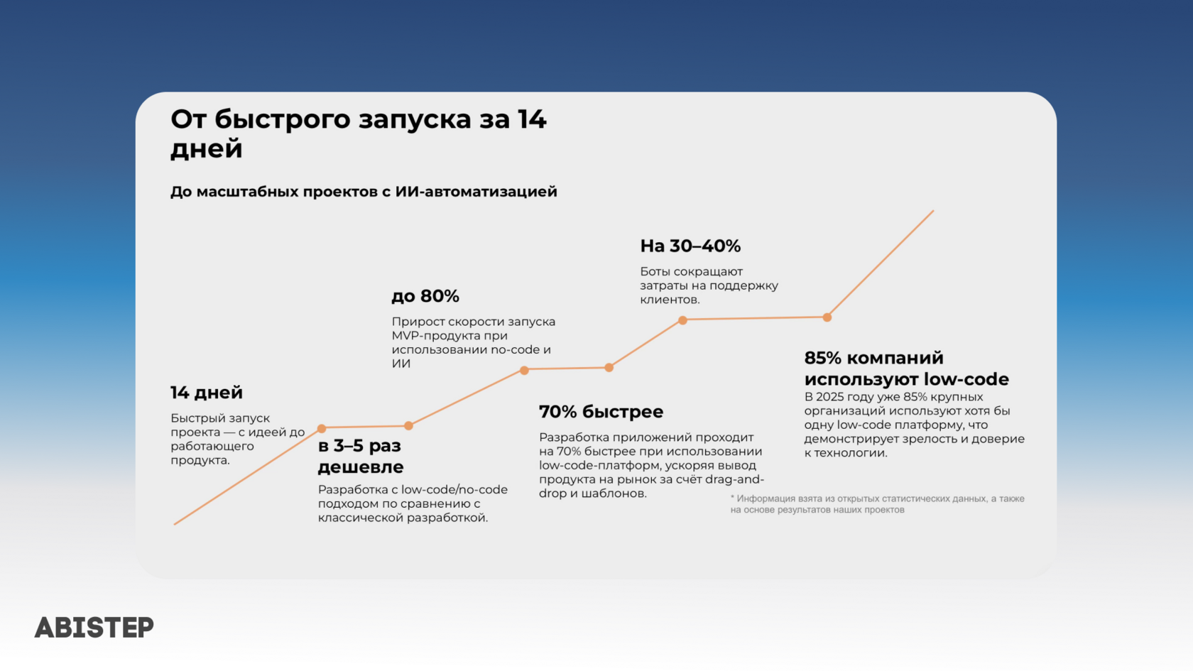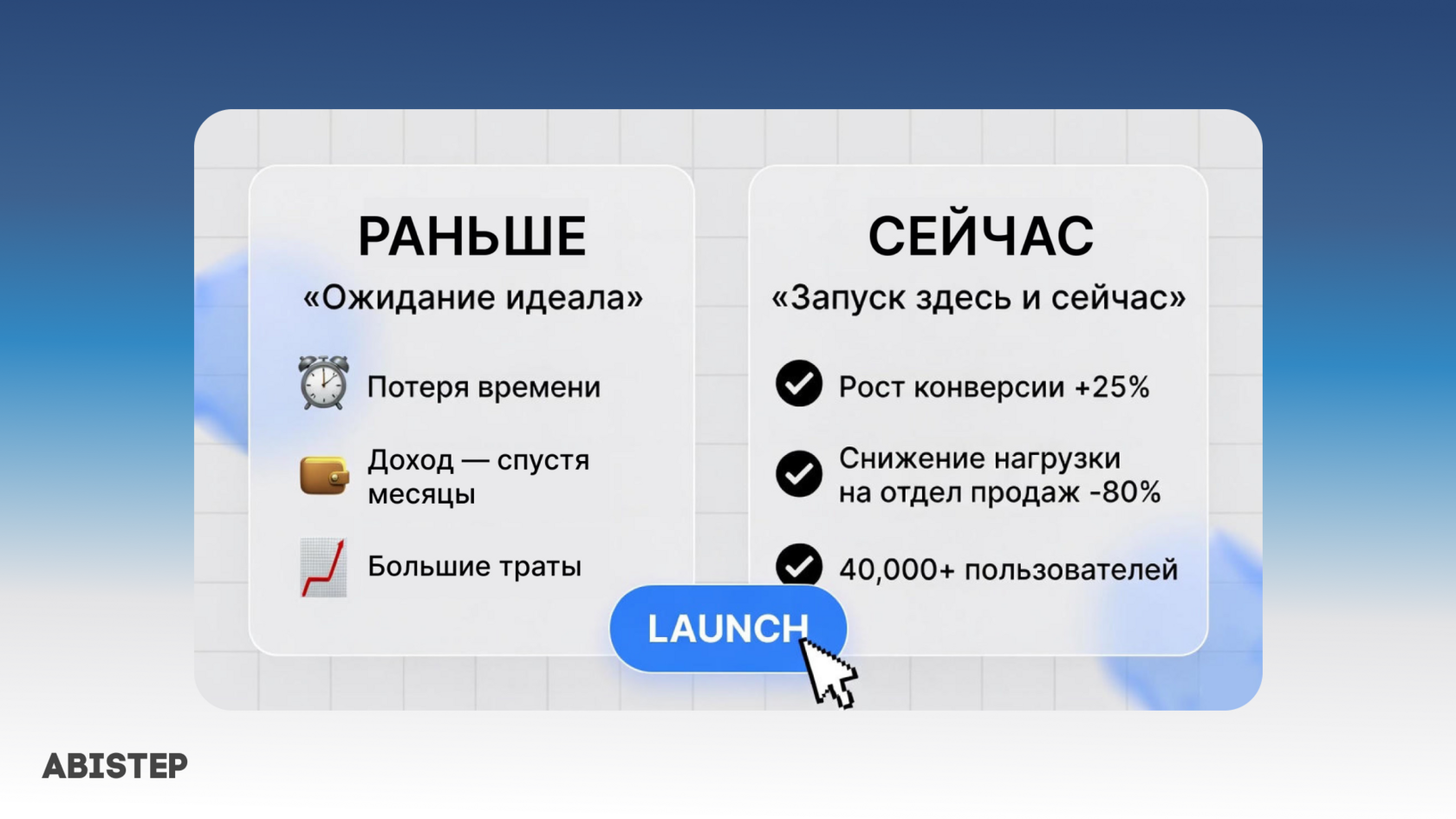 Если раньше бизнес мог себе позволить 3–6 месяцев на создание MVP, то сегодня каждая неделя простоя — это упущенные клиенты, растущие издержки и преимущество для конкурентов. В Abistep мы за десятки проектов убедились: разница между «ожиданием идеала» и «запуском здесь и сейчас» измеряется не только в сроках — а в конверсии, ROI и даже выживании продукта.